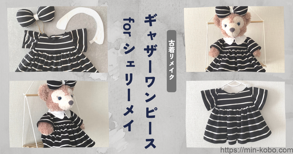 古着をリメイクして作るワンピースの作り方を紹介します。裏地は無く端の処理もほつれ止めを使い、見えないところは単純な作りになるようにしています。襟をつける工程が少し難しいので、ワンピースとは別の付け襟にしました。コスチュームを着せてパークに連れて行く場合などは、付け襟は回ったり取れたりしやすいので、目立たないところで付け襟をワンピースに縫い付けることをおすすめします。